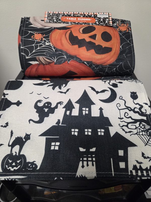 13″ x 72″ Table Runner in 2 Prints. Cream and Black or Black and Orange