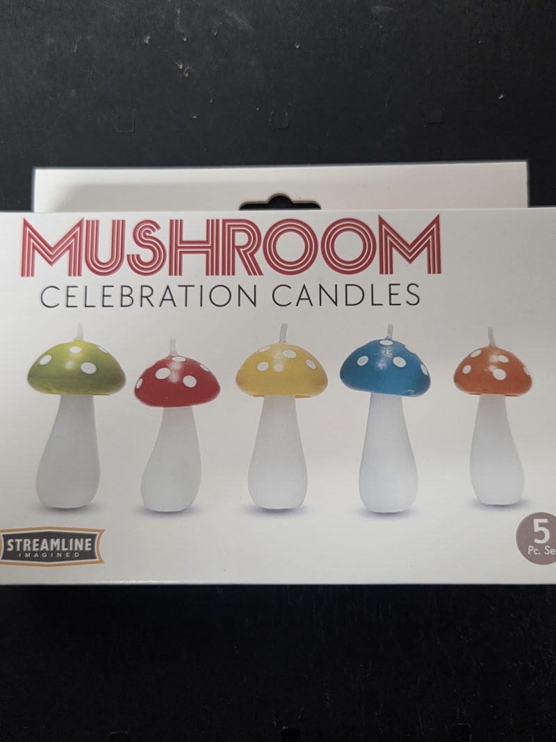5 Count Mushroom Candles. Approximatly 2.5″ Tall. 100% Paraffin Wax with Cotton Wick.