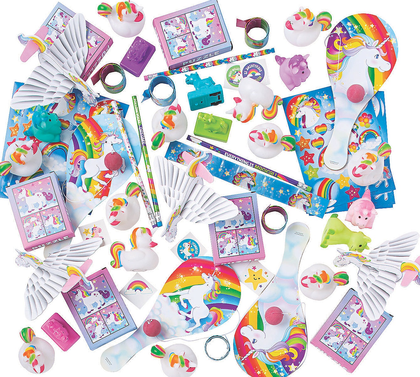 50 Piece Unicorn Party Favor Assortment. Assortment May Vary. There are Some Small Pieces.
