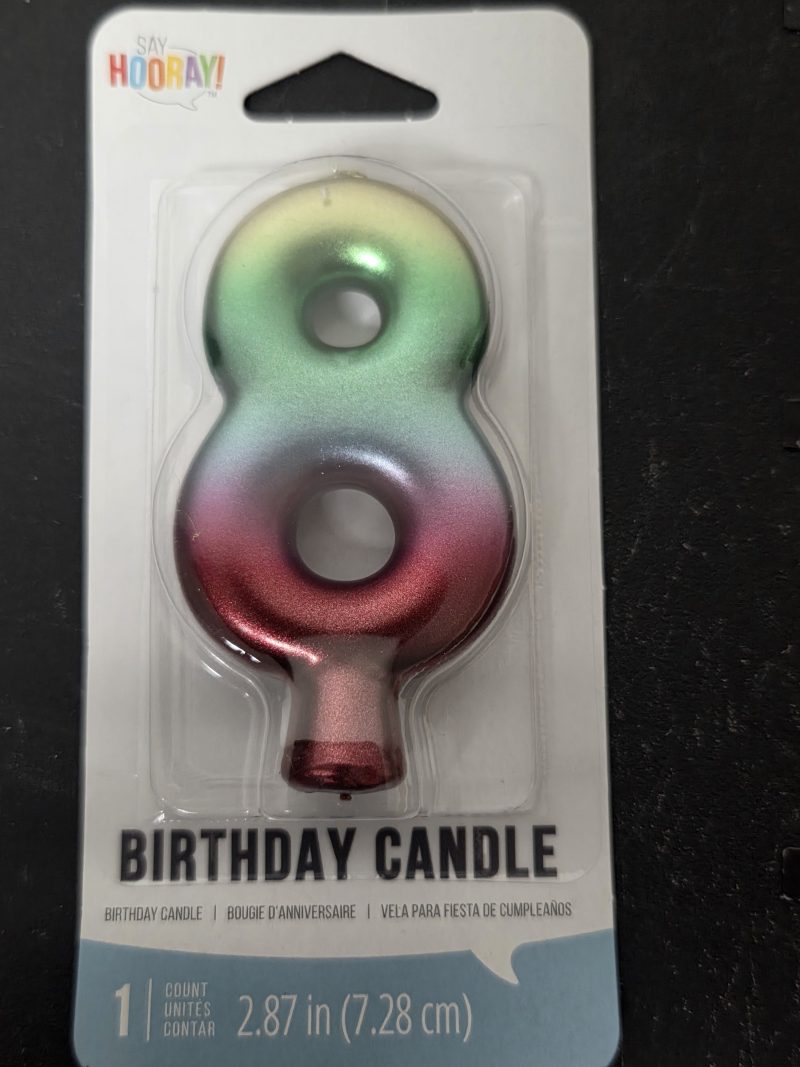 # 8 Rainbow Ombre Birthday Candle. Approximatly 3″ Tall.